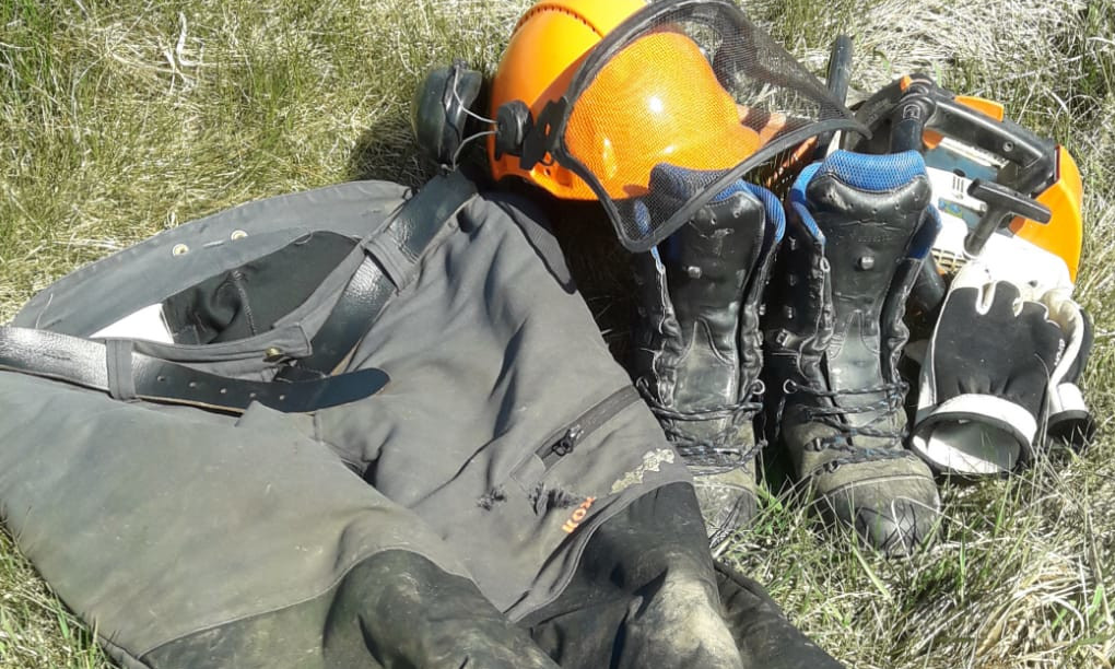 In PEFC-zertifizierten Wäldern werden Schnittschutzhosen getragen